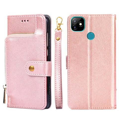 Funda de Cuero para Itel Vision 1 con Bolsa de Cremallera (Oro Rosa)