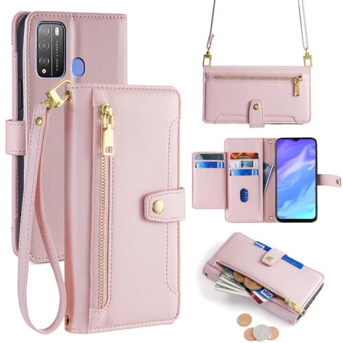 Funda de Cuero para Itel Vision 1 Pro con Billetera, Cremallera y Textura de Oveja (Rosa)
