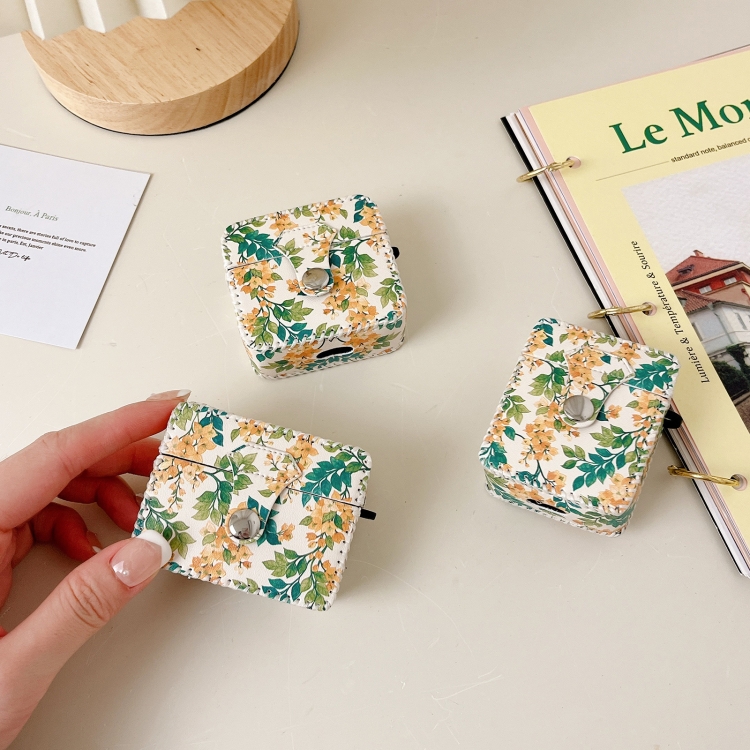 Funda para Caja de Auriculares Inalámbricos de Cuero AirPods Pro PU (Flor Amarilla)