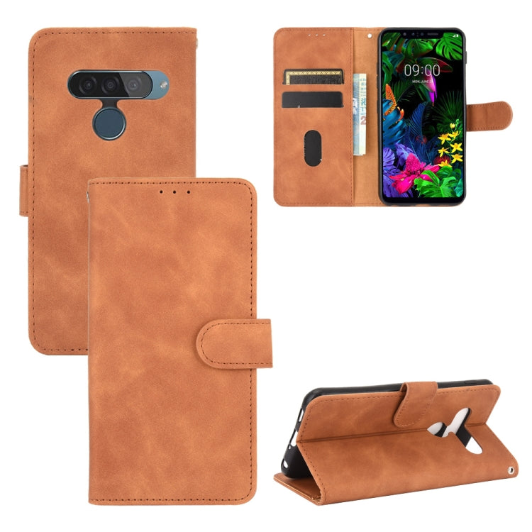 Funda Cuero Pu para LG G8S Thinq con Soporte, Hebilla Magnética, Ranuras para Tarjetas y Billetera (Marrón)