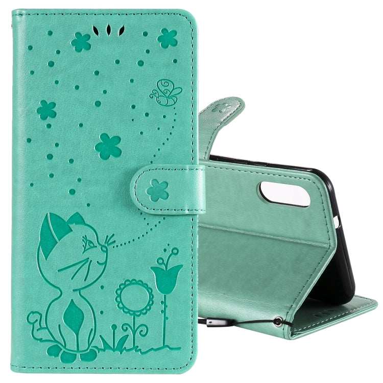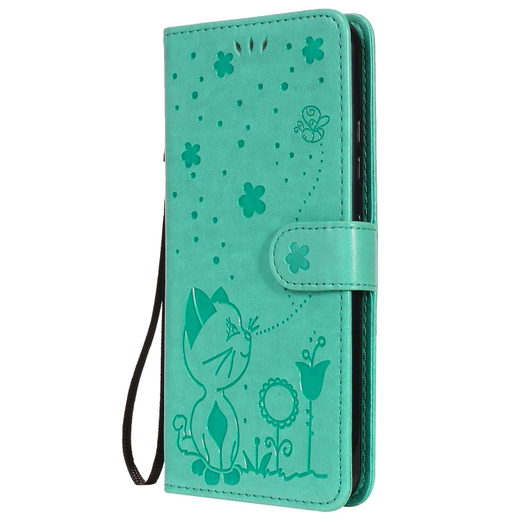 Funda de Cuero LG K22 K22 Plus CAT Bee Patrón Relieve Tapa Horizontal Soporte Ranuras Tarjetas Billetera (Verde)