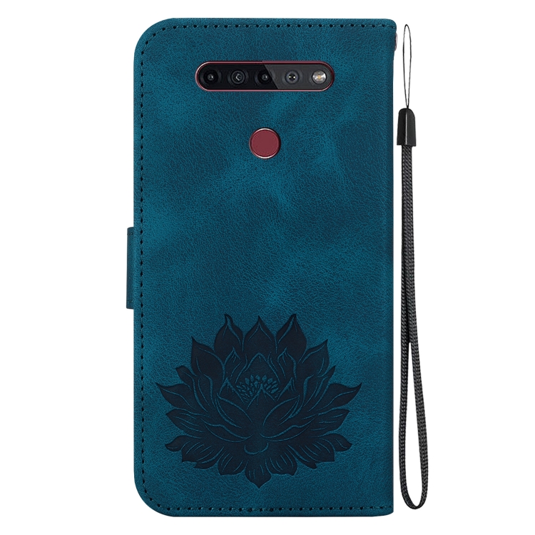 Funda de Cuero para LG K41S y K51S con Relieve de Loto (Azul Oscuro)
