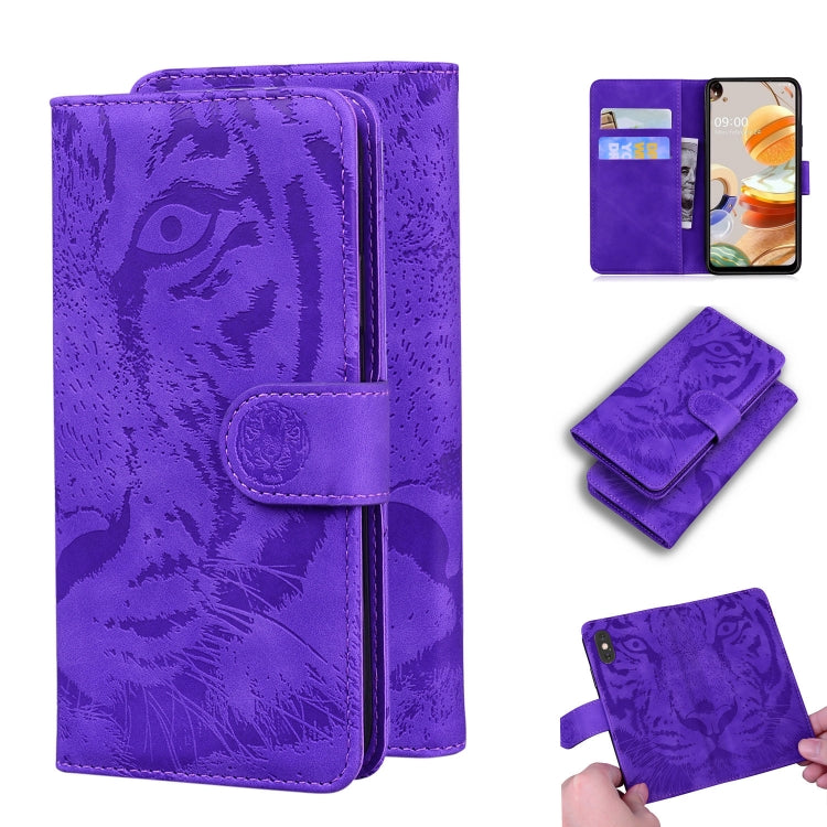 Funda de Cuero para LG K41S / K51S con Tapa Horizontal, Soporte, Ranuras para Tarjetas y Billetera (Morado)