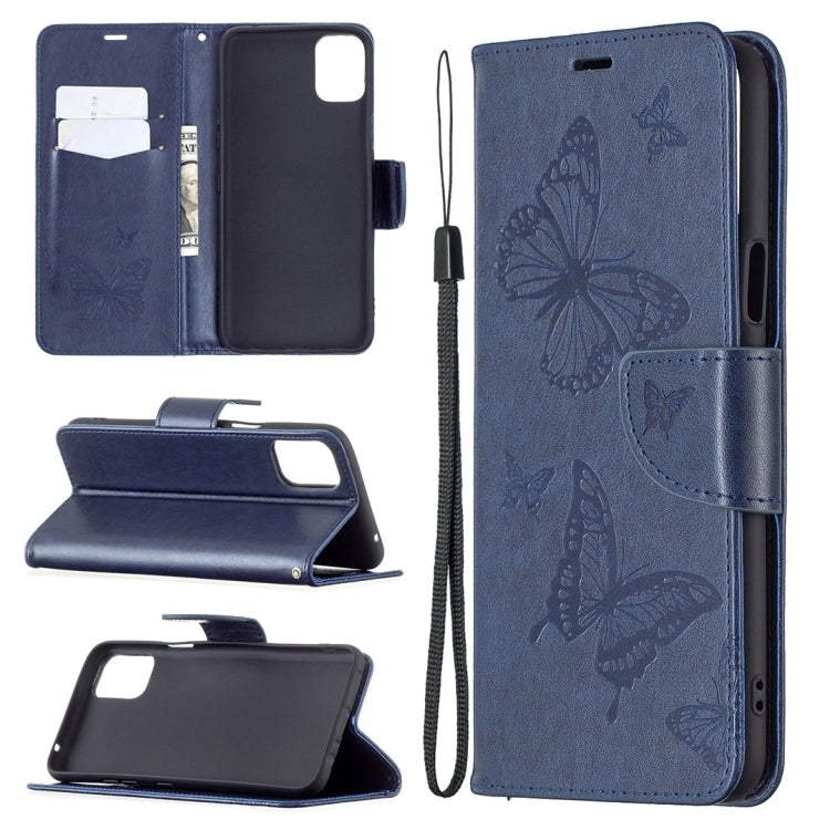 Funda de Cuero Horizontal para LG K42 con Dos Mariposas, Soporte, Ranura para Tarjeta y Cordón (Azul Oscuro)