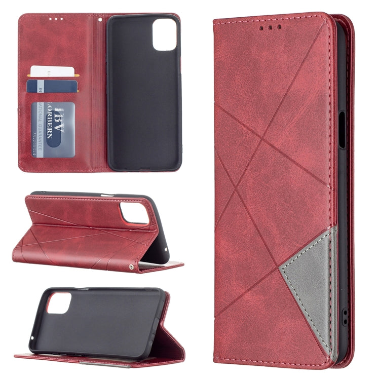 Funda Horizontal Flip para LG K42 Rhombus Texture con Soporte y Ranuras para Tarjeta (Rojo)