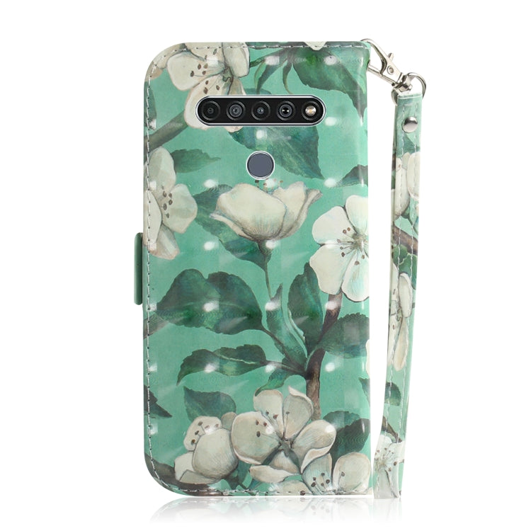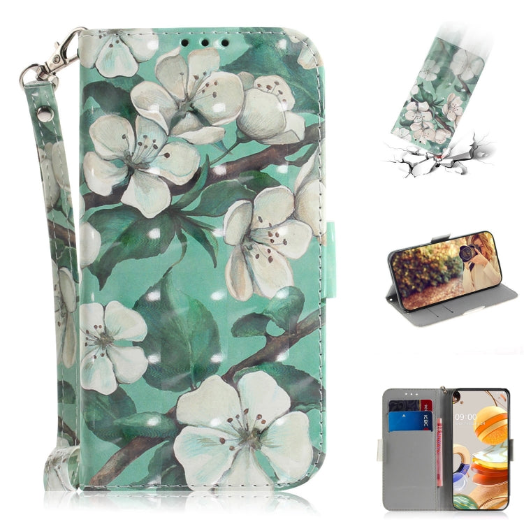 Funda de Cuero Abatible Horizontal para LG K61 con Dibujo 3D, Soporte, Ranuras y Cordón (Flor de Acuarela)