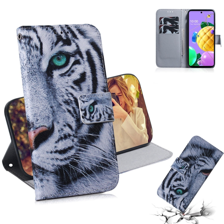 Funda de Cuero Abatible Horizontal para LG K62 K52 Q52 con Soporte, Ranuras y Billetera (Tiger)