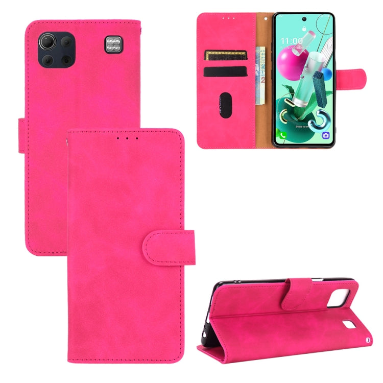 Funda Cuero PU para LG K92 5G con Hebilla Magnética, Soporte y Ranuras para Tarjetas (Rosa Roja)