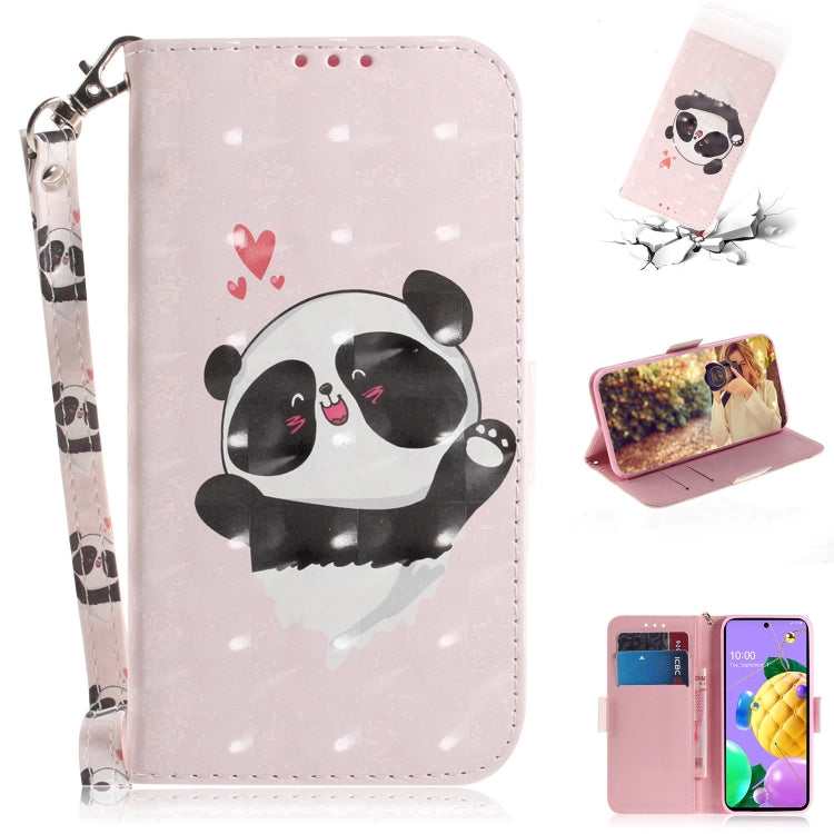 Funda de Cuero Abatible Horizontal para LG Q52 con Dibujo 3D, Soporte, Ranuras para Tarjetas y Cordón (Heart Panda)