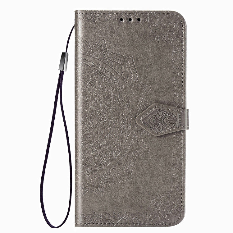 Funda de Cuero para LG Style3 L-41A Mandala Flower con Tapa Horizontal, Soporte y Ranura (Gris)