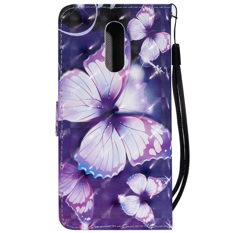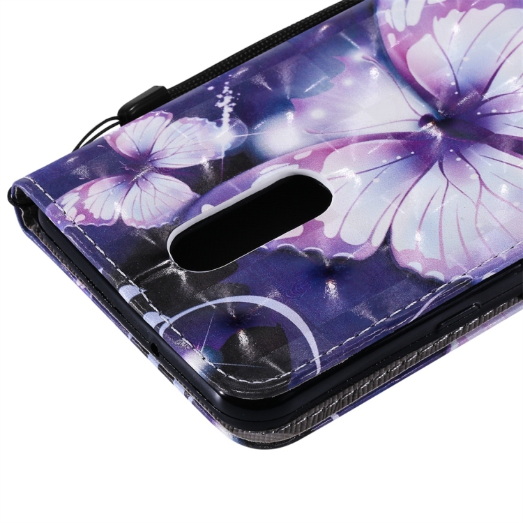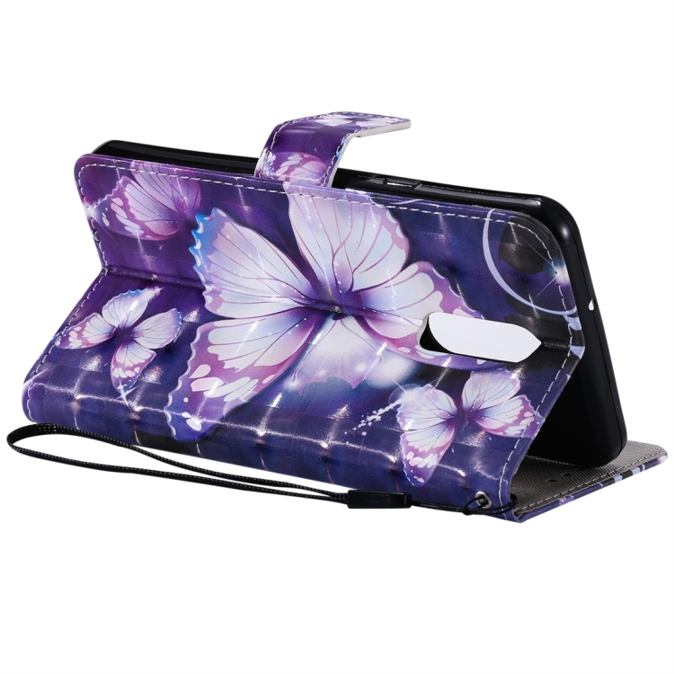 Funda de Cuero para LG Stylo 5 con Tapa Horizontal, Patrón 3D, Billetera, Soporte, Ranuras y Cordón (Mariposa Morada)
