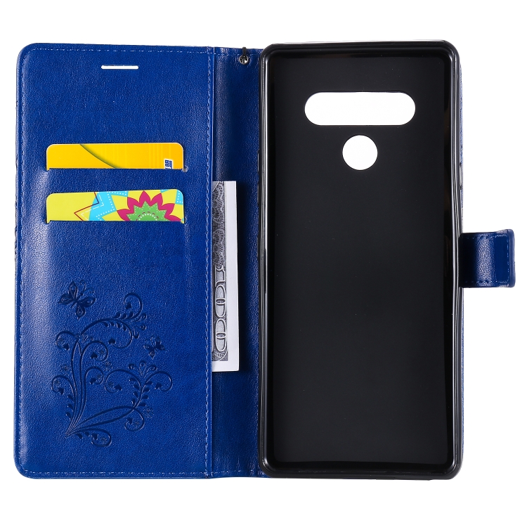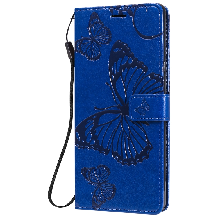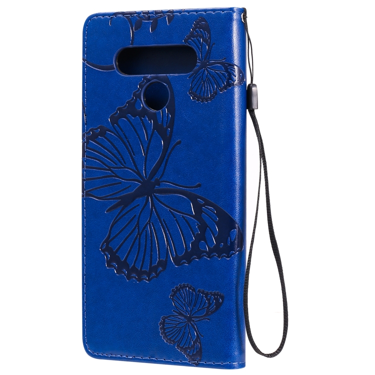 Funda de Cuero para LG Stylo 6 con Tapa Horizontal, Patrón Mariposa 3D, Soporte, Ranura para Tarjeta y Cordón (Azul)