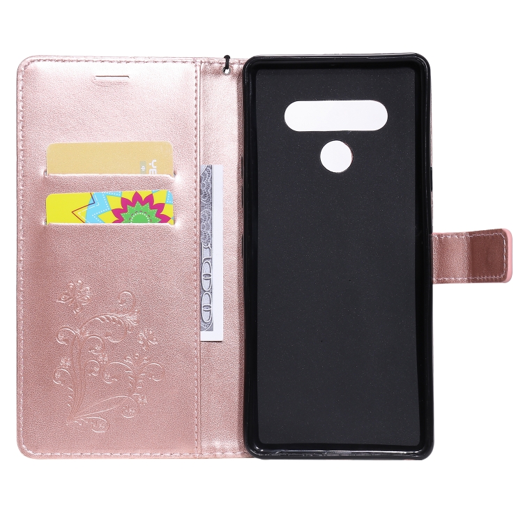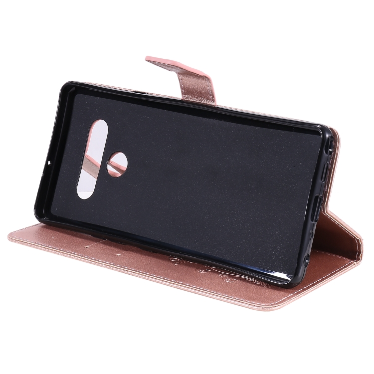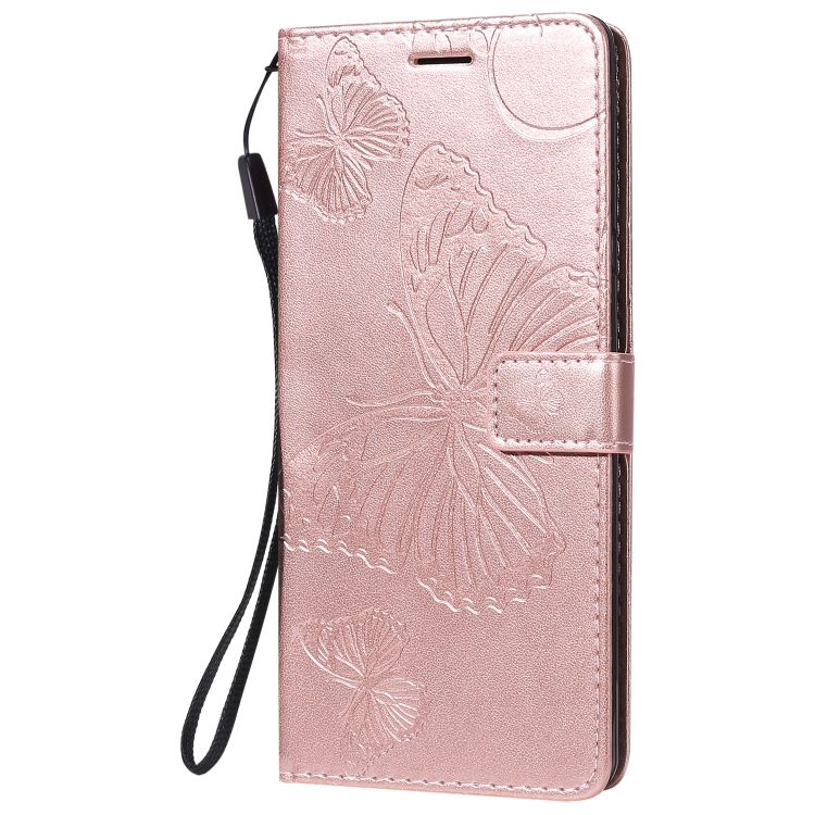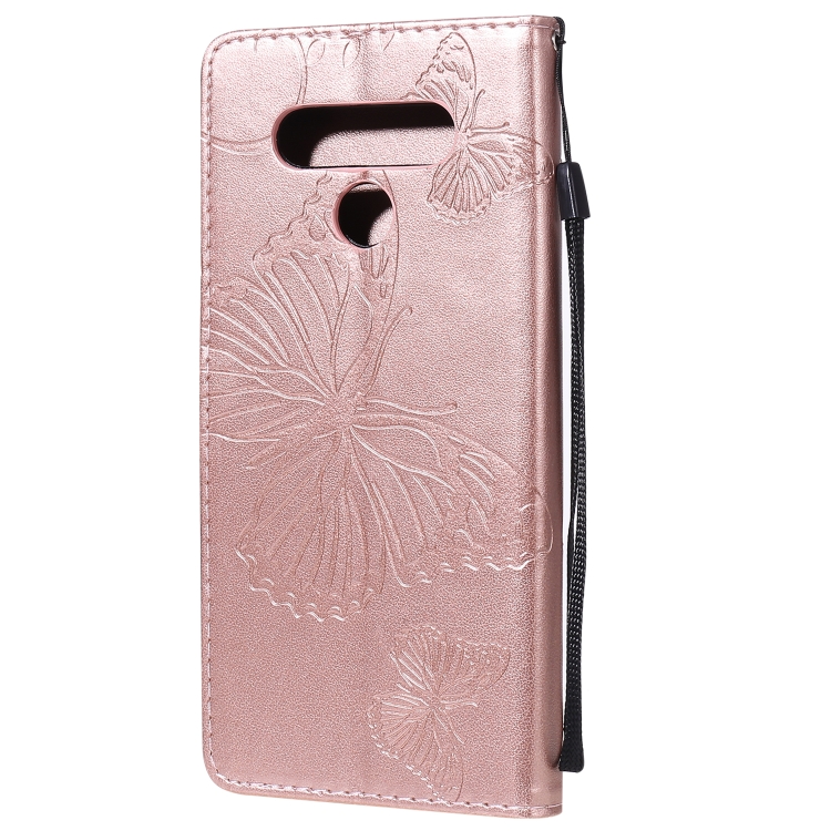 Funda de Cuero para LG Stylo 6 con Tapa Horizontal, Patrón Mariposa 3D, Soporte, Ranura Tarjeta, Billetera y Cordón (Oro Rosa)