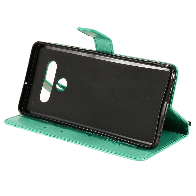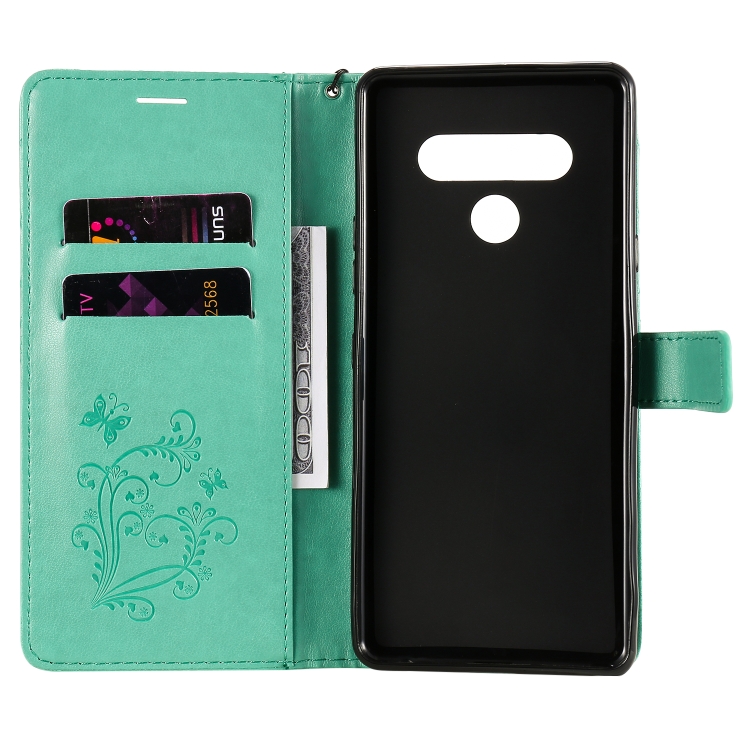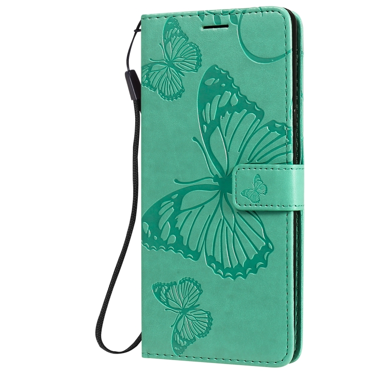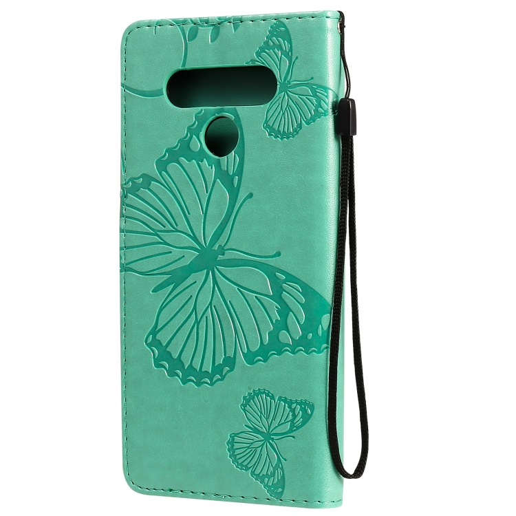 Funda de Cuero para LG Stylo 6 con Tapa Horizontal, Mariposa 3D, Soporte, Ranura para Tarjeta, Billetera y Cordón (Verde)