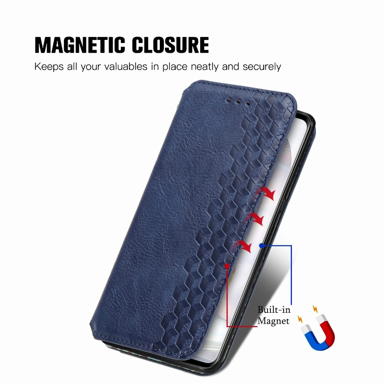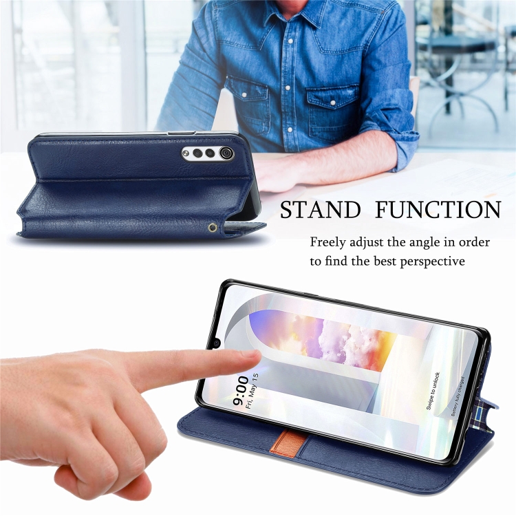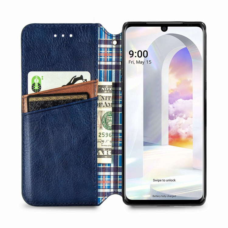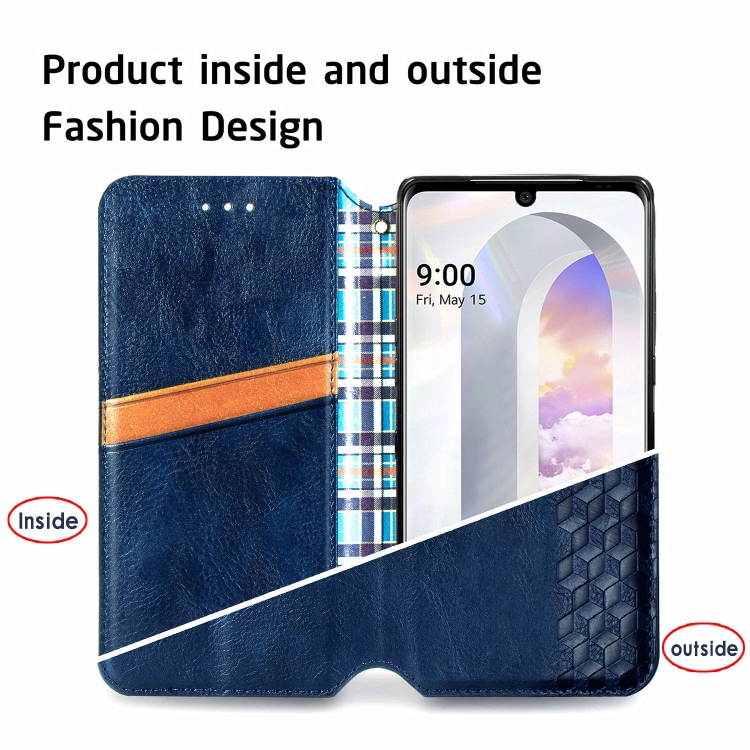 Estuche Cuero Sintético LG Velvet 5G Cubic Grid con Soporte, Ranuras y Billetera (Azul)