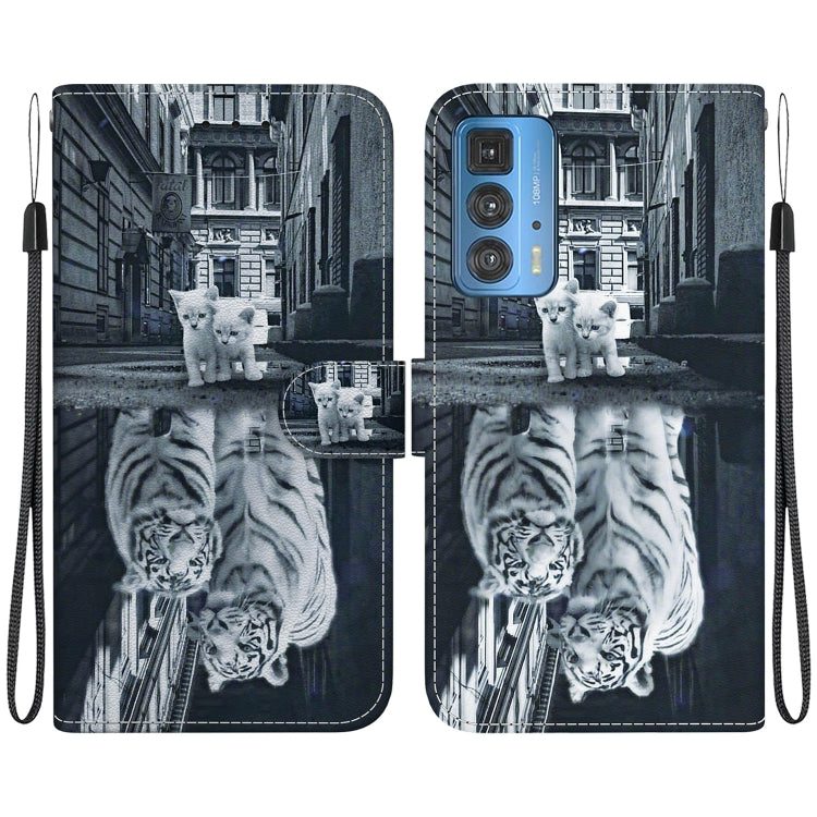 Funda de Cuero para Motorola Edge 20 Pro con Dibujo Coloreado y Textura de Cristal (Reflejo de Tigre Gato)