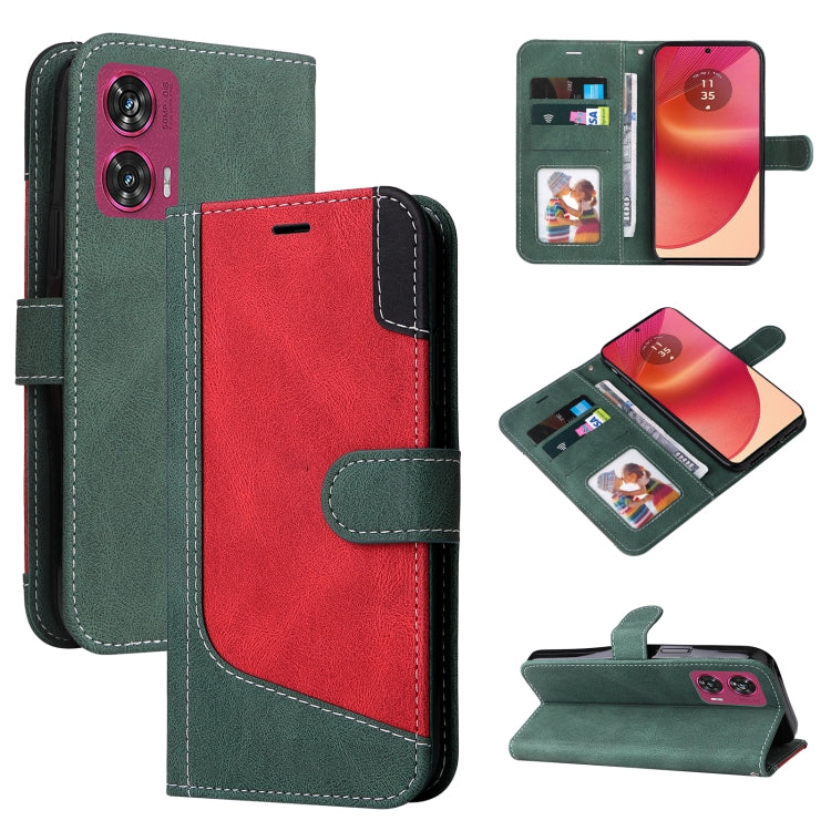 Funda de Cuero para Motorola Edge 50 Fusion con Empalme de Tres Colores (Verde)