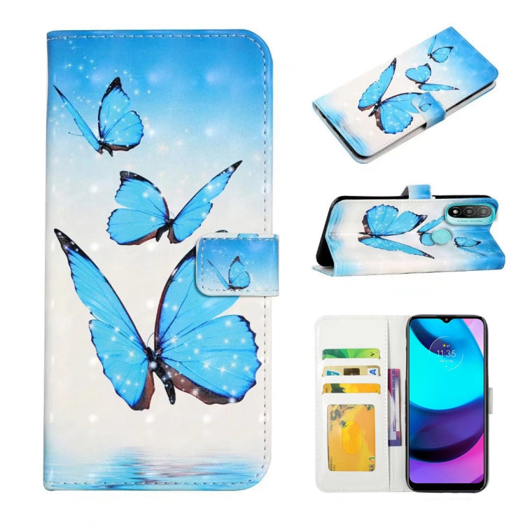 Funda de Cuero para Motorola Moto E20 E30 E40 con Dibujo 3D en Relieve al Óleo (3 Mariposas)