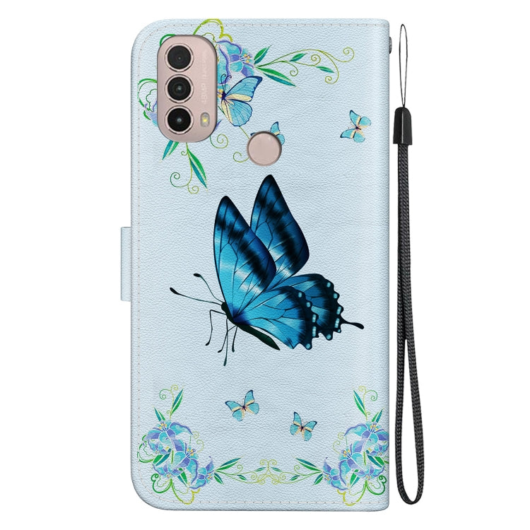 Funda para Motorola Moto E20 E30 E40 Cuero con Dibujo Coloreado y Textura de Cristal (Pensamientos Azules)