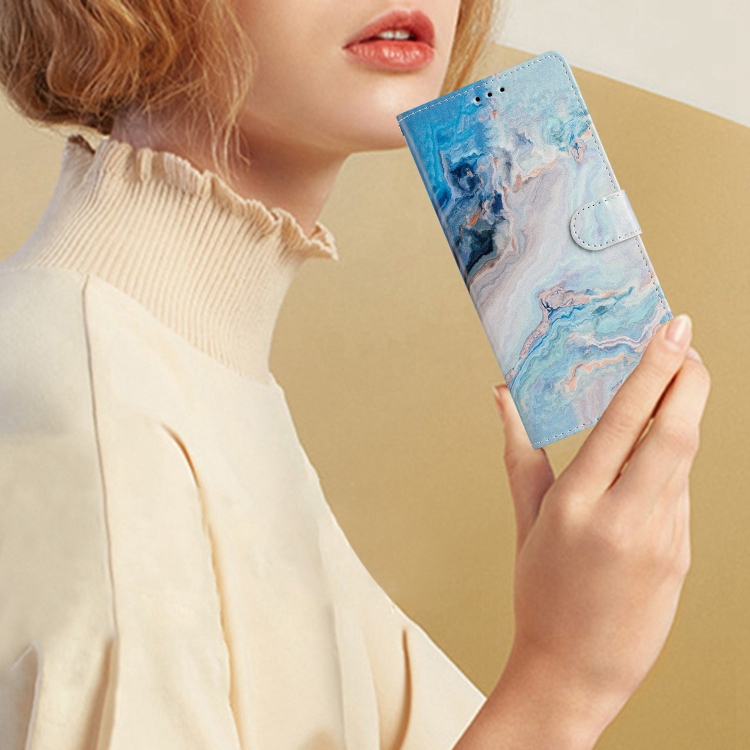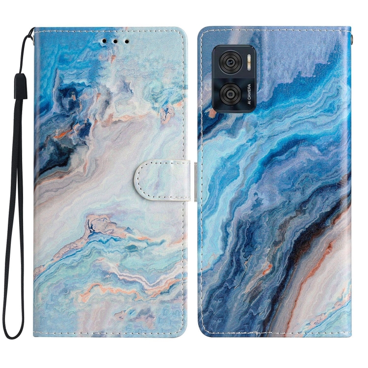 - 1x Estuche para Motorola Moto E22 de Cuero con Dibujo Coloreado Mármol Azul