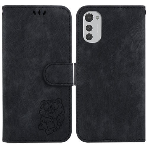 Funda de Cuero para Motorola Moto E32 Little Tiger en Relieve (Negro)