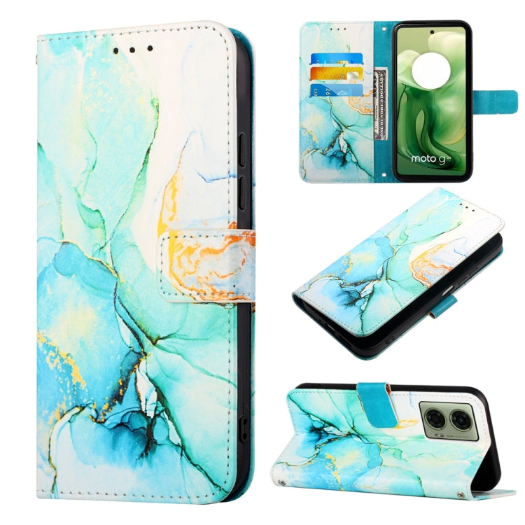 Funda de Cuero con Tapa para Motorola Moto G04 4G / G24 4G Pt003 con Patrón de Mármol (Verde)