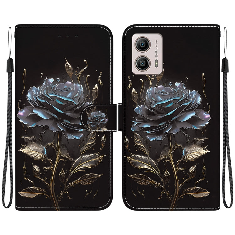 Funda para Motorola Moto G13 G23 G53 de Cuero con Dibujo Coloreado y Textura de Cristal (Rosa Negra)