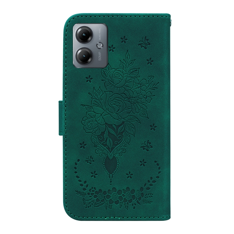 Funda de Cuero para Motorola Moto G14 Butterfly Rose con Relieve (Verde)