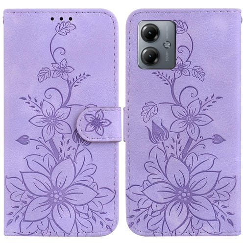 - 1x Funda de Cuero En Relieve para Motorola Moto G14 Lily para Teléfono (Púrpura)