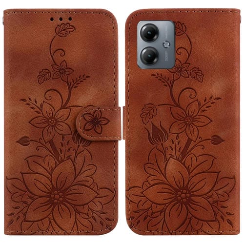 Funda de Cuero En Relieve para Motorola Moto G14 Lily (Marrón)