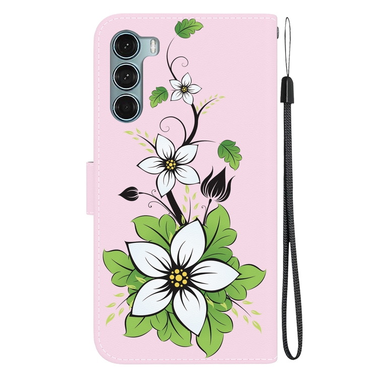 Funda de Cuero para Motorola Moto G200 5G con Dibujo Coloreado y Textura de Cristal (Lirio)