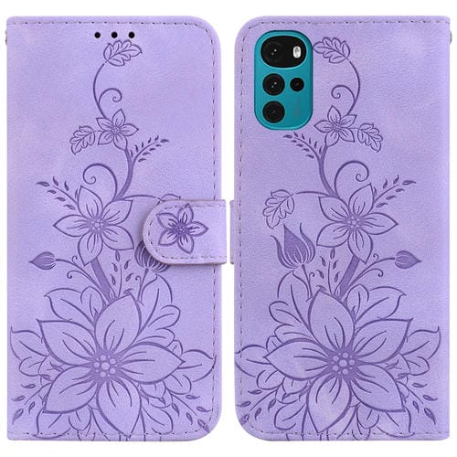 - 1x Funda para Motorola Moto G22 Lily de Cuero en Relieve (Púrpura)