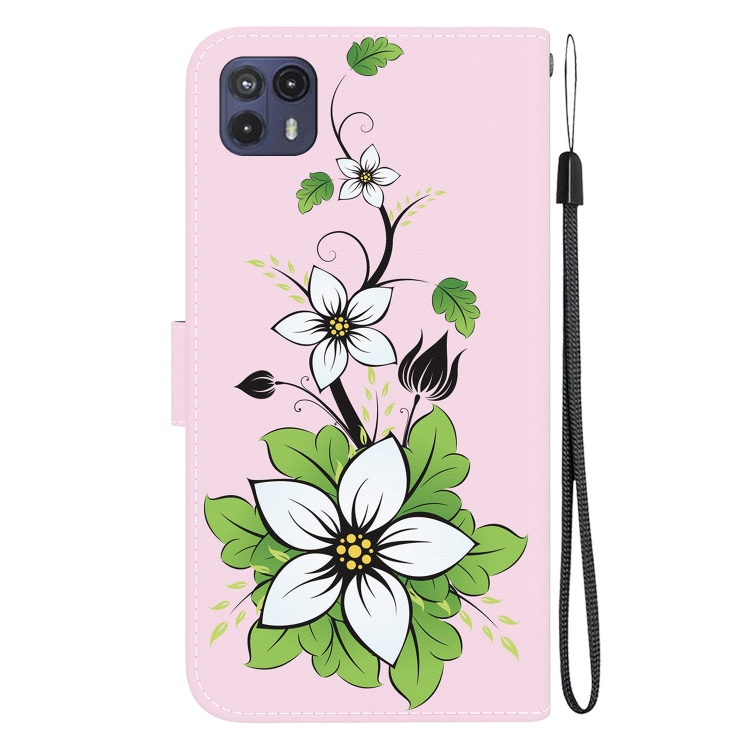 Funda de Cuero para Motorola Moto G50 5G con Dibujo Coloreado y Textura de Cristal (Lirio)
