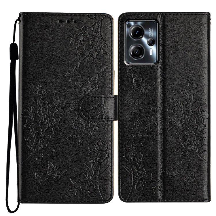 Funda de Cuero para Motorola Moto G53 5G con Mariposas y Flores (Negro)