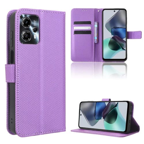 - 1x Caja de Teléfono de Cuero para Motorola Moto G53 / G13 con textura de diamante (Púrpura)