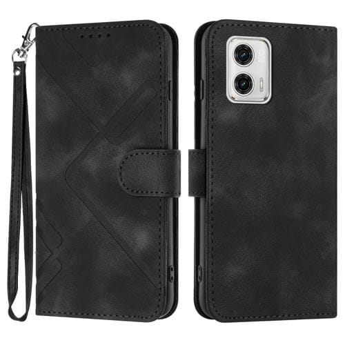 Funda de Cuero para Motorola Moto G53 con Patrón Lineal y Textura Skin Feel (Negro)