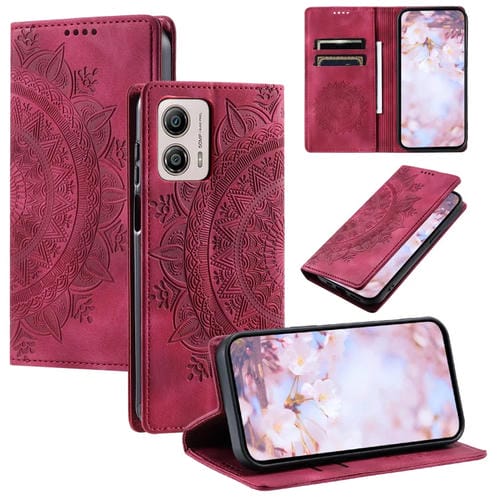 Funda de Cuero Magnética Totem para Motorola Moto G53 en Relieve (Rojo)