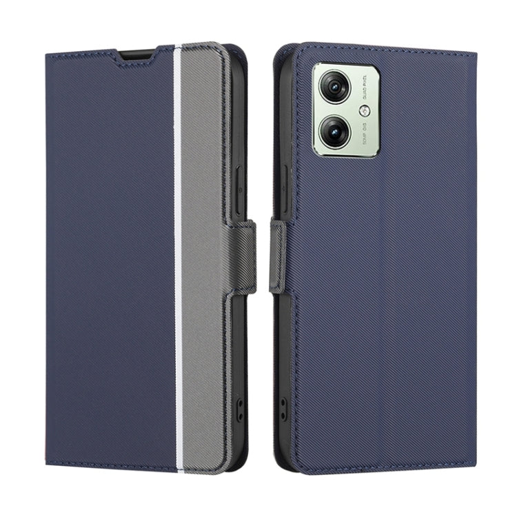 Funda para Motorola Moto G54 5G Eu Edition de Cuero con Botón Lateral y Textura de Sarga (Azul)