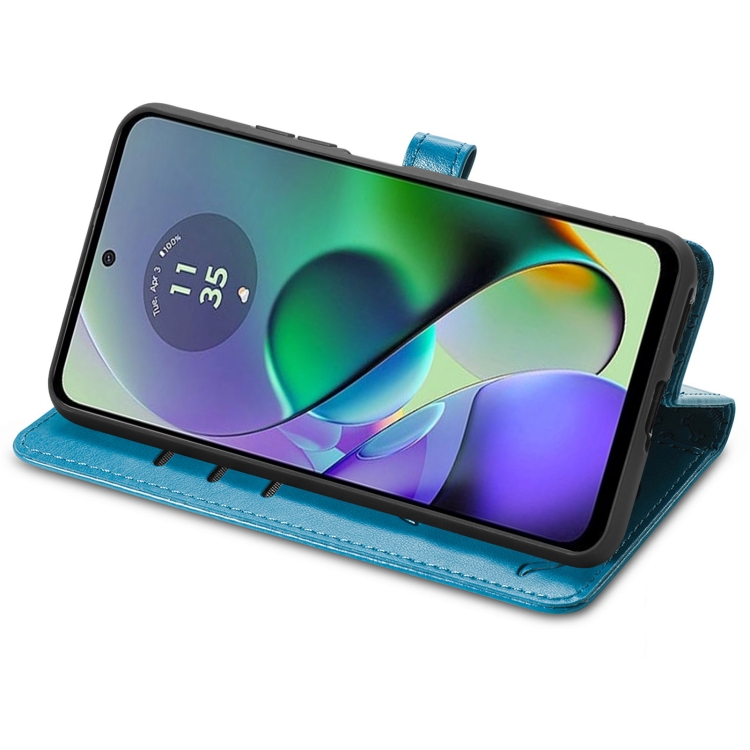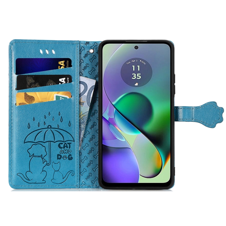Funda para Motorola Moto G54 5G de Cuero con Relieve de Perro y Gato (Azul)