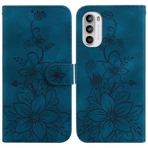 Funda de Cuero en Relieve para Motorola Moto G62 5G Lily (Azul Oscuro)