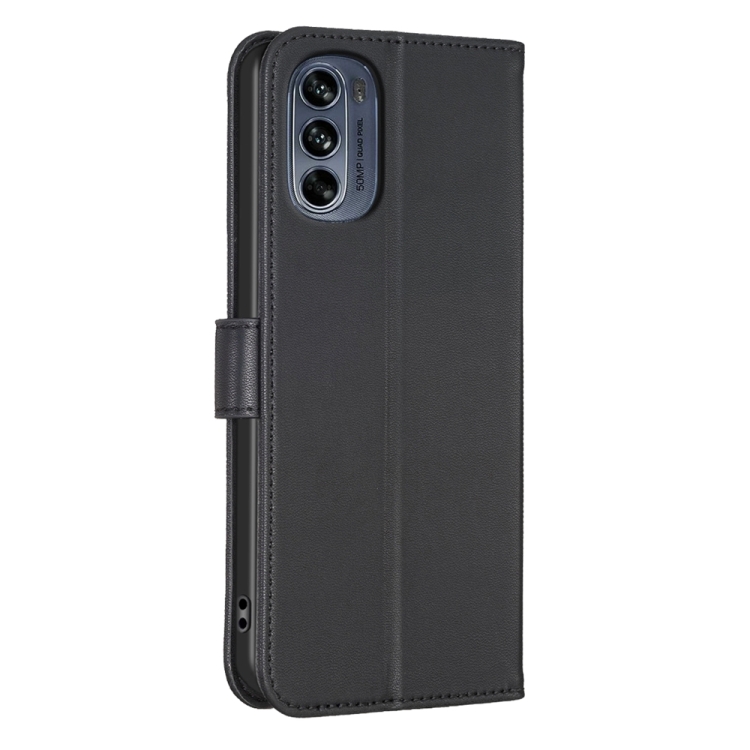 Funda de Cuero para Motorola Moto G62 con Relieve de Cuatro Hojas (Negro)