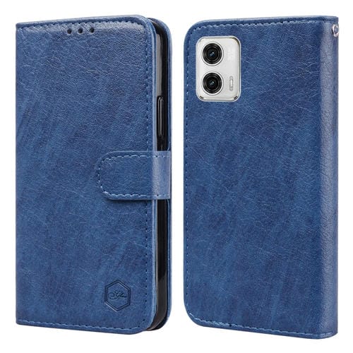 - 1x Funda para Motorola Moto G73 con Sensación de Piel Aceite Textura de Cuero PU y TPU (Azul Oscuro)
