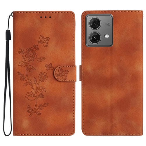 Funda de Cuero para Motorola Moto G84 5G con Estampado de Mariposa y Flor (Marrón)
