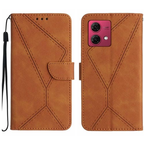 Funda de Cuero para Motorola Moto G84 con Costuras en Relieve (Marrón)