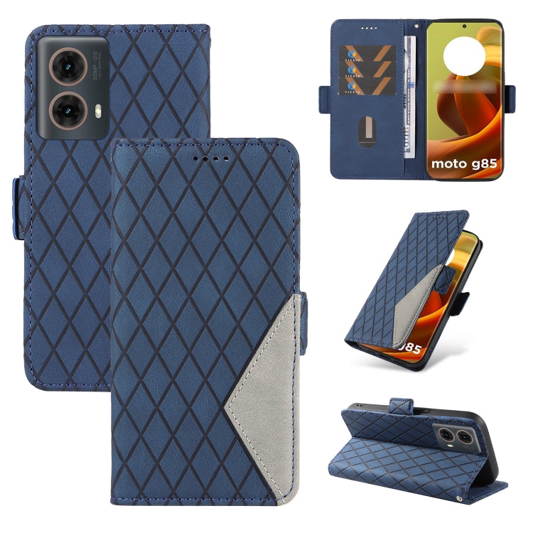 Funda de Cuero para Motorola Moto G85 con Entramado Rómbico de Dos Colores (Azul)