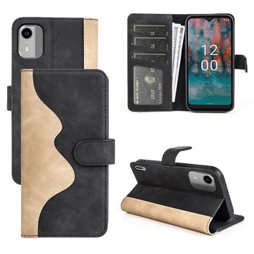 Funda de Cuero para Nokia C12 Costura Horizontal Flip para Teléfono (Negro)
