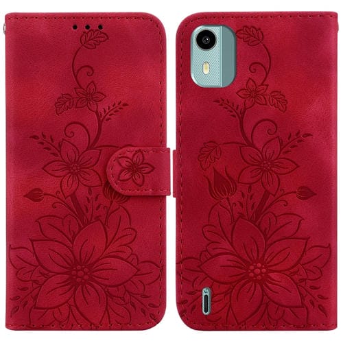 Funda para Teléfono Nokia C12 Lily de Cuero en Relieve (Rojo)