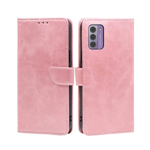 Funda para Nokia G42 5G de Cuero con Tapa, Hebilla y Textura de Becerro (Oro Rosa)