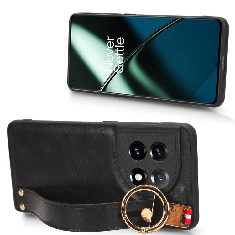 Funda de Cuero para OnePlus 11 con Muñequera (Negro)
