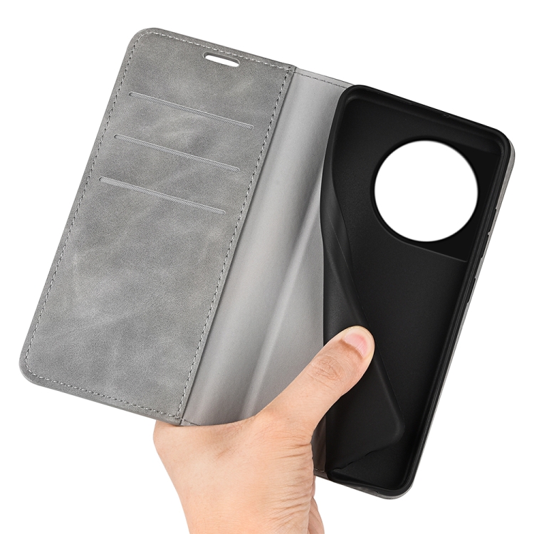 - 1x Funda de Cuero para OnePlus 11 con Succión Magnética de Piel Retro (Gris)